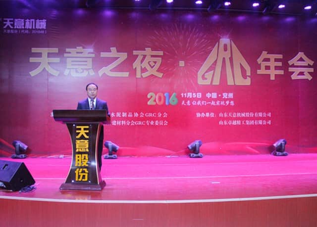為加快GRC技術(shù)創(chuàng)新,積極適應(yīng)經(jīng)濟(jì)新常態(tài),2016年11月5日,2016 GRC年會(huì)暨裝配式建筑發(fā)展研討會(huì)在山東圣德酒店盛大召開,本次會(huì)議由GRC協(xié)會(huì)及專業(yè)委員會(huì)主辦,山東天意機(jī)械股份有限公司協(xié)辦。