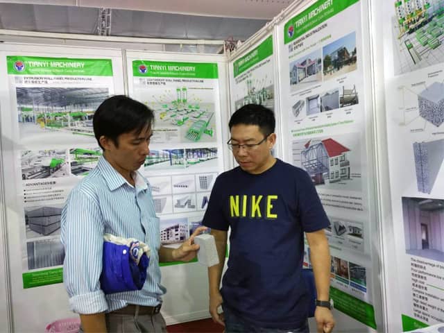 越南是亞洲經(jīng)濟(jì)發(fā)展速度的國家之一。近年來,越南正加大對(duì)基礎(chǔ)設(shè)施建設(shè)和主要城市居民住宅的改造力度,綠色建筑建材裝備缺口巨大,為適應(yīng)市場需求,天意機(jī)械攜綠色建材設(shè)備參展了此次展會(huì)。展會(huì)期間,外貿(mào)銷售部李經(jīng)理,認(rèn)真對(duì)待每位來訪的客戶,詳細(xì)向其介紹天意機(jī)械專利產(chǎn)品輕質(zhì)墻板生產(chǎn)線,復(fù)合墻板生產(chǎn)線,保溫裝飾一體化板生產(chǎn)線等產(chǎn)品的優(yōu)勢,以及設(shè)備在東南亞地區(qū)建筑建材市場的影響,展會(huì)現(xiàn)場就有多數(shù)客戶,初步簽訂了輕質(zhì)墻板生產(chǎn)線、復(fù)合墻板生產(chǎn)線加工生產(chǎn)訂單。