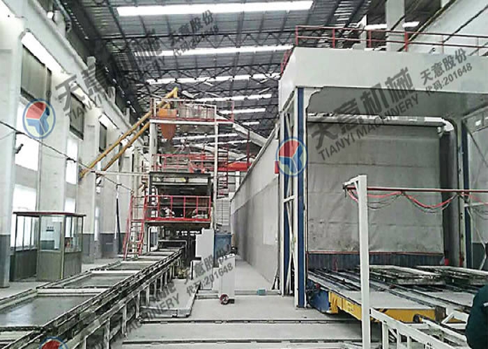 • 多功能墻板生產(chǎn)線,可生產(chǎn)“三明治”夾芯板,鋼邊框屋面板、樓面板,不帶面板復(fù)合板。生產(chǎn)線主要分為自動配料系統(tǒng)、攪拌系統(tǒng)、發(fā)泡系統(tǒng)、中央控制配電系統(tǒng)、輕質(zhì)混凝土布料系統(tǒng)、磨光系統(tǒng)、模具循環(huán)系統(tǒng)、養(yǎng)護系統(tǒng)、碼垛系統(tǒng)等部分組成。
