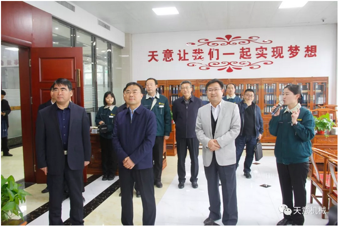 2018年11月27日,省政協(xié)辦公廳副主任朱興剛帶領(lǐng)“政協(xié)工作齊魯行”集中采訪團(tuán)一行23人,在市政協(xié)副主席陳希忠、兗州區(qū)區(qū)委書(shū)記王宏偉等領(lǐng)導(dǎo)陪同下,蒞臨天意機(jī)械考察指導(dǎo),公司董事長(zhǎng)劉洪彬熱情接待采訪團(tuán)一行并陪同參觀。