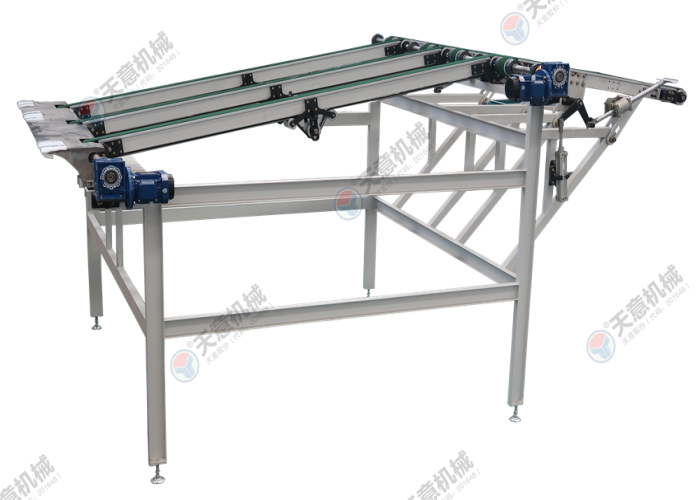 適用于折頁機烘干后的出板工序。由拉板輸送和下坡輸送組成