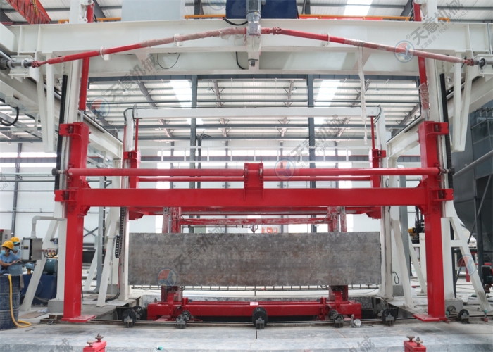 當砌塊的強度達到可進行切割時, 加氣混凝土便開始脫模。脫模后的砌塊被運送到切割線上。在切割線上, 加氣混凝土先經(jīng)過校準 、整形, 而后進行縱向切割和橫向切割。  榫口、凹槽和手持孔的切割在坯體進行蒸壓前處理完成,這樣就無需摩削硬化后的 加氣混凝土成品了,從而節(jié)約成產(chǎn)成本,這也是我們“零工藝廢料”概念的一部分。